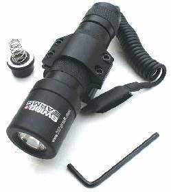 Professionelle Taschenlampe von Swiss Arms, welche speziell für den Gebrauch auf Waffen konzepiert wurde. Die Taschenlampe wird über zwei Lithium CR123-A Batterien betrieben und ist bedienbar über ein "Demand System" welches individuell plaziert werden kann. Die Taschenlampe passt auf alle gängigen Markierer mit Picatinny-Typ (US Military-Standard) Visierschiene.