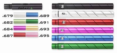 Das FreakSet gehört zu den ersten und immer noch zu den besten Laufsystemen die es gibt. Das System ist absolut offen, so daß man den Lauf z.B. durch Tauschen des hinteren Adapters an verschiedenen Markierern spielen kann. Die Hülsen die in dieses Teil geschoben werden, haben die Aufgabe, sich genau dem Durchmesser der Paint anzupassen und so immer ein bestmögliches Schußbild zu erzeugen. Der vordere Teil kann ebenfalls ausgetauscht werden um sich der Spielposition oder auch dem persönlichen Geschmack anzupassen.