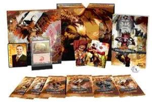 zwei Kartenboxen; "The Time Spiral Player's Guide", eine Pro Player Card, ein Time Spiral Spindown Würfel, ein 40-Karten Time Spiral Standardland Paket, 6x Time Spiral Booster Packs mit je 15 Karten, ein Roman.