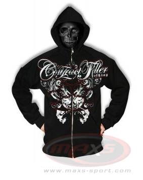 Stylisher neuer Zip Hoodie von Hybrid aus der 08er Kollektion. Gefertigt aus sehr hochwertiger Baumwolle, mit genialem Druck versehen und auffälligen Applikationen feingetuned. Der Hoodie besticht neben seiner Qualität durch das gewohnte Contract Killer Design. Bis zum Kinn hochziebarer Zip, warme Taschen an der Front für die Hände und eine Tasche am rechten Ärmel für Handy, MP3-Player etc. sind kleine Besonderheiten, die den Hoodie besonders attraktiv machen.