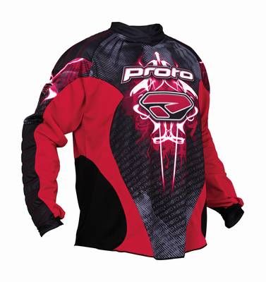 Das Jersey ist das Teil das am meisten gesehen wird. Das neue 2009 Proto Jersey ist voll von Design und Funktionalität. Proto hat die Durchlüftung verbessert um eine bessere Kühlung zu erzielen. Zum Patent angemeldete Silikon Applikationen verbessern die Stabilität des Luftsystems und sorgen dafür dass er nicht verrutscht. Abgesteppte Polsterungen an Schultern, Ellenbogen und Unterarmen, sorgen dafür das das Proto 09 Jersey optimalen Schutz bieten. Elastische Bündchen haben jetzt ein Daumenloch damit das Jersey beim Sliden nicht mehr nach oben rutscht.