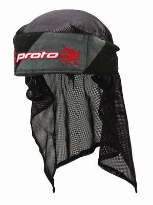 Stylische Kopfbedeckung von Proto mit integriertem Stirnband. Schützt den Kopf und sorgt durch das verwendete Meshmaterial gleichzeitig für einen kühlen Kopf. Farbe: schwarz/grau/rot