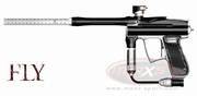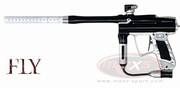 Die Angel 1 FLY aus dem Hause Angel Paintball Sports ist die Weiterentwiklung der Angel 1. Noch schmaler, noch leichter und mit eineigen Verbesserungen setzt sie neue Massstäbe bei den Angel Markierer. Reliable - thoroughly field tested by Stockholm Joy Division during the 2007 NPPL and Millennium tournaments and to devastating effect in early 2008 Millenniums. Lighter - Angel designers and engineers have tried to remove as much material as possible - without compromising the structural integrity and typical design flair of the FLY. Faster - cycling speed, because the lighter hammer reacts even faster. Lower Operating Pressure - even more gentle on paint More Efficient - 1800 + shots per 68cu" due to the all new Magno Valve Less Recoil - due to the lighter hammer which aids in reducing reciprocating mass. Greater Accuracy - the lighter hammer results in considerably less recoil and increased accuracy. Improved Traction Control - all new fly paper creates even more stability - improved feel and touch in wet greasy conditions - replaceable inserts in the important gun/player interface areas. Zero Lateral Trigger Movement - all new trigger and trigger retention mechanism - NEW super-lightweight blade style trigger incorporates the standard ANGEL four way adjustability and the NEW mounting mechanism which results in absolutely ZERO lateral movement. New In Line Regulator - now features a standard thread regulator mount which allows you easy access to the regulator internals for easy servicing and maintenance. Even Kinder on Fragile Paint - completely re-designed valve system - the Magno Valve uses magnetic repulsion to assist in valve closure. The advantages being lower pressure operation. Couple this with the incredible KISS Technology and the FLY will shoot more fragile paint than any other marker on the planet. Re- Designed Micro-Arm Lever Lock Feed Tube Clamp - lighter and smaller and less likely to be inadvertently snagged open. Composite Barrel Tip - super light, super accurate composite barrel tip by SLY. Three Piece Eye Cover Straps - colour co-ordinated, Funktionsweise: Elektro-Pneumatisch, Diverse Firemodes, up to 35 Cycles/Second Nur für HP geeignet. Farbe: schwarz glänzend / weiss seidenmatte Teile