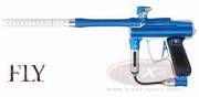 Die Angel 1 FLY aus dem Hause Angel Paintball Sports ist die Weiterentwiklung der Angel 1. Noch schmaler, noch leichter und mit eineigen Verbesserungen setzt sie neue Massstäbe bei den Angel Markierer. Reliable - thoroughly field tested by Stockholm Joy Division during the 2007 NPPL and Millennium tournaments and to devastating effect in early 2008 Millenniums. Lighter - Angel designers and engineers have tried to remove as much material as possible - without compromising the structural integrity and typical design flair of the FLY. Faster - cycling speed, because the lighter hammer reacts even faster. Lower Operating Pressure - even more gentle on paint More Efficient - 1800 + shots per 68cu" due to the all new Magno Valve Less Recoil - due to the lighter hammer which aids in reducing reciprocating mass. Greater Accuracy - the lighter hammer results in considerably less recoil and increased accuracy. Improved Traction Control - all new fly paper creates even more stability - improved feel and touch in wet greasy conditions - replaceable inserts in the important gun/player interface areas. Zero Lateral Trigger Movement - all new trigger and trigger retention mechanism - NEW super-lightweight blade style trigger incorporates the standard ANGEL four way adjustability and the NEW mounting mechanism which results in absolutely ZERO lateral movement. New In Line Regulator - now features a standard thread regulator mount which allows you easy access to the regulator internals for easy servicing and maintenance. Even Kinder on Fragile Paint - completely re-designed valve system - the Magno Valve uses magnetic repulsion to assist in valve closure. The advantages being lower pressure operation. Couple this with the incredible KISS Technology and the FLY will shoot more fragile paint than any other marker on the planet. Re- Designed Micro-Arm Lever Lock Feed Tube Clamp - lighter and smaller and less likely to be inadvertently snagged open. Composite Barrel Tip - super light, super accurate composite barrel tip by SLY. Three Piece Eye Cover Straps - colour co-ordinated, Funktionsweise: Elektro-Pneumatisch, Diverse Firemodes, up to 35 Cycles/Second Nur für HP geeignet. Farbe: blau seidenmatt / silber glänzende Teile
