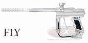 Die Angel 1 FLY aus dem Hause Angel Paintball Sports ist die Weiterentwiklung der Angel 1. Noch schmaler, noch leichter und mit eineigen Verbesserungen setzt sie neue Massstäbe bei den Angel Markierer. Reliable - thoroughly field tested by Stockholm Joy Division during the 2007 NPPL and Millennium tournaments and to devastating effect in early 2008 Millenniums. Lighter - Angel designers and engineers have tried to remove as much material as possible - without compromising the structural integrity and typical design flair of the FLY. Faster - cycling speed, because the lighter hammer reacts even faster. Lower Operating Pressure - even more gentle on paint More Efficient - 1800 + shots per 68cu" due to the all new Magno Valve Less Recoil - due to the lighter hammer which aids in reducing reciprocating mass. Greater Accuracy - the lighter hammer results in considerably less recoil and increased accuracy. Improved Traction Control - all new fly paper creates even more stability - improved feel and touch in wet greasy conditions - replaceable inserts in the important gun/player interface areas. Zero Lateral Trigger Movement - all new trigger and trigger retention mechanism - NEW super-lightweight blade style trigger incorporates the standard ANGEL four way adjustability and the NEW mounting mechanism which results in absolutely ZERO lateral movement. New In Line Regulator - now features a standard thread regulator mount which allows you easy access to the regulator internals for easy servicing and maintenance. Even Kinder on Fragile Paint - completely re-designed valve system - the Magno Valve uses magnetic repulsion to assist in valve closure. The advantages being lower pressure operation. Couple this with the incredible KISS Technology and the FLY will shoot more fragile paint than any other marker on the planet. Re- Designed Micro-Arm Lever Lock Feed Tube Clamp - lighter and smaller and less likely to be inadvertently snagged open. Composite Barrel Tip - super light, super accurate composite barrel tip by SLY. Three Piece Eye Cover Straps - colour co-ordinated, Funktionsweise: Elektro-Pneumatisch, Diverse Firemodes, up to 35 Cycles/Second Nur für HP geeignet. Farbe: weiss seidenmatt / silber glänzende Teile